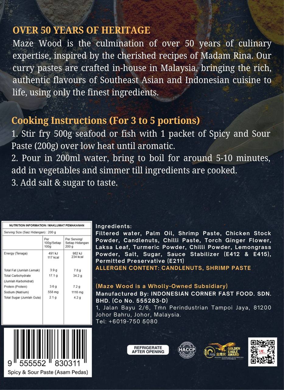 1) Stir fry fish or seafood with 1 packet of Spicy & Sour Paste over low heat until aromatic.